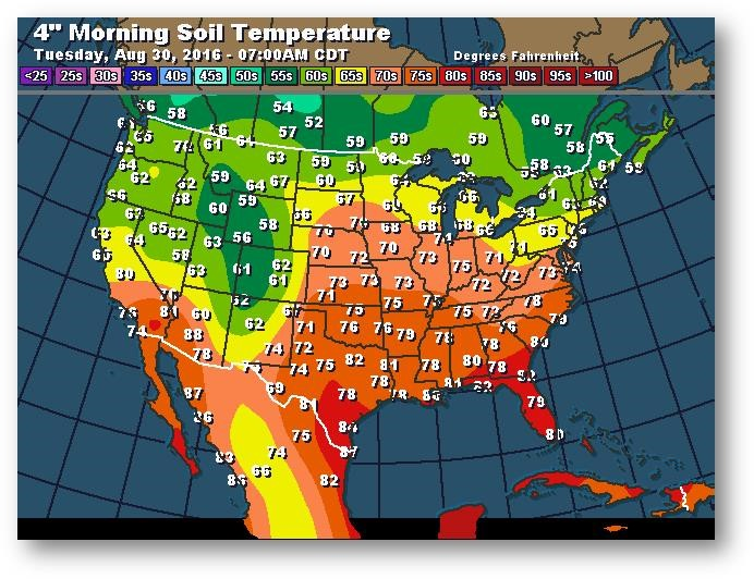 Température du sol en matinée à une profondeur de 4 pouces (degrés Farenheit)