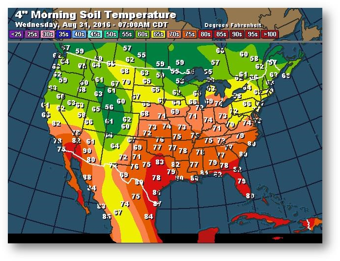 Température du sol en matinée à une profondeur de 4 pouces (degrés Farenheit)