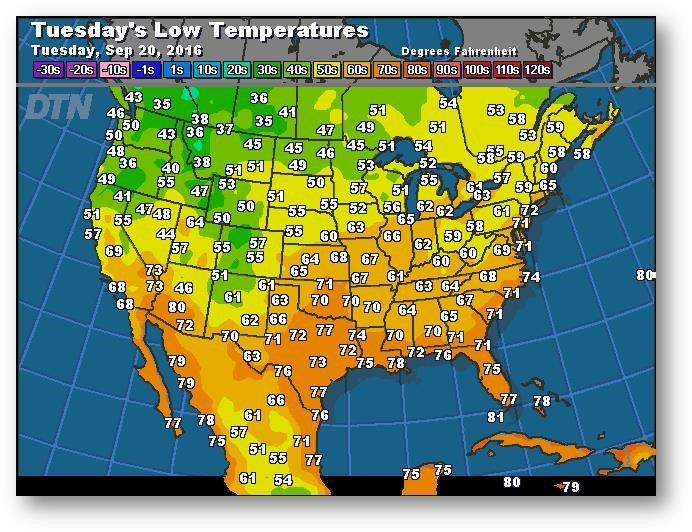 Prévisions des températures les plus basses (degrés Farenheit)