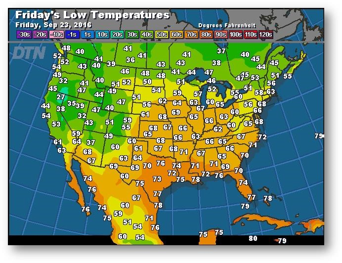 Prévisions des températures les plus basses (degrés Farenheit)