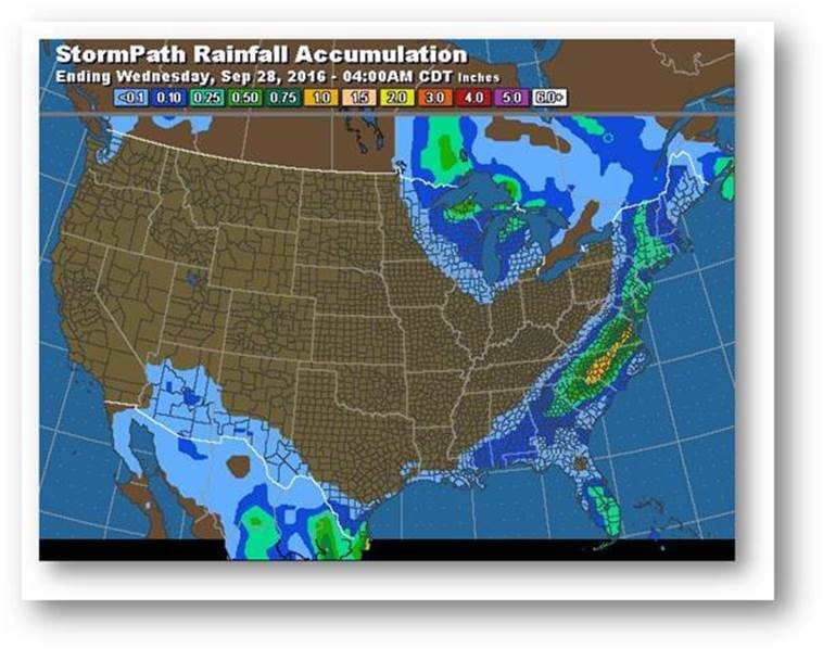 Trajectoire de tempête – Accumulation de précipitations (pouces)
