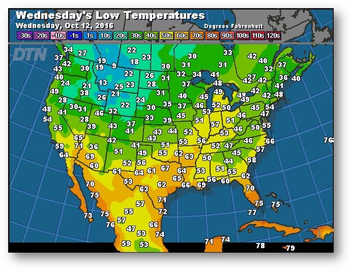Prévisions des températures les plus basses (degrés Farenheit)