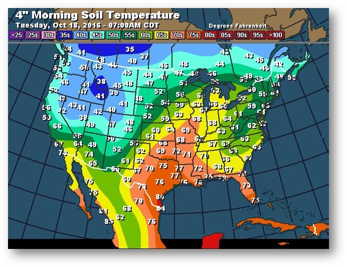 Température du sol en matinée à une profondeur de 4 pouces (degrés Farenheit)