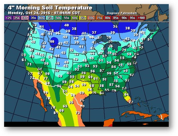 Température du sol en matinée à une profondeur de 4 pouces (degrés Farenheit)