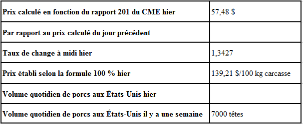 Évolution du prix calculé en fonction du rapport 201 du CME : baisse prévue de 17,29$/100lb