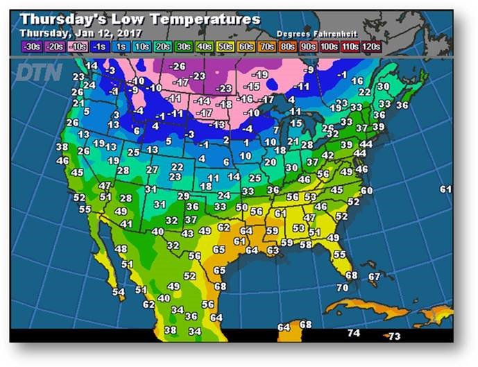 Prévisions des températures les plus basses (degrés Farenheit)