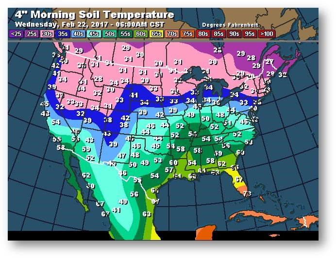 Température du sol en matinée à une profondeur de 4 pouces (degrés Farenheit)