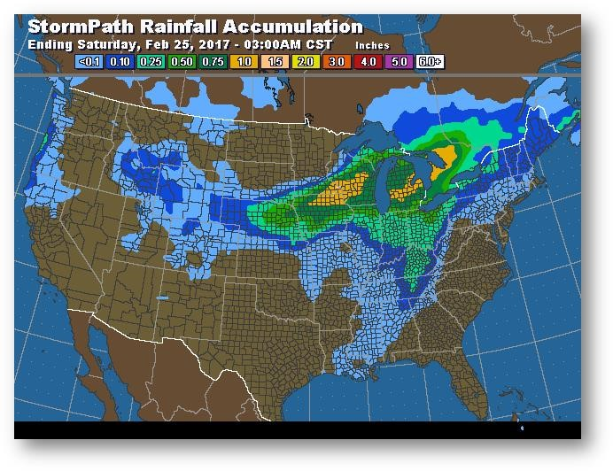 Trajectoire de tempête – Accumulation de précipitations (pouces)