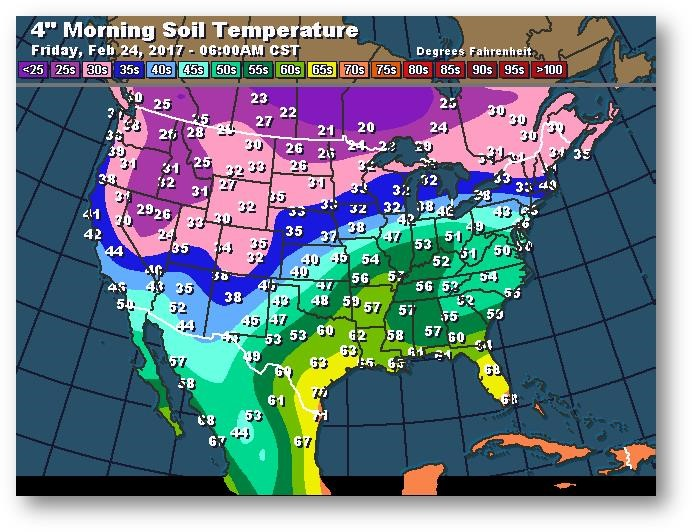 Température du sol en matinée à une profondeur de 4 pouces (degrés Farenheit)