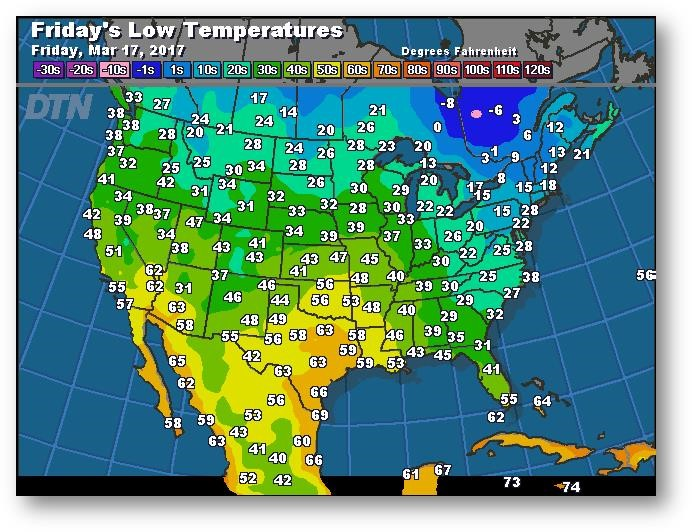 Prévisions des températures les plus basses (degrés Farenheit)