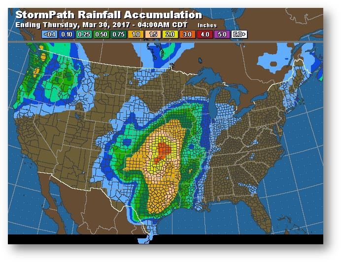 Trajectoire de tempête – Accumulation de précipitations (pouces)