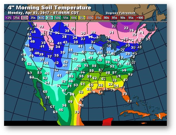 Température du sol en matinée à une profondeur de 4 pouces (degrés Farenheit)