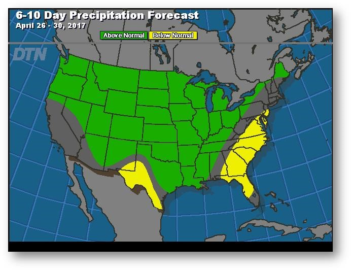 Le contrat à terme de mai se tient au neutre. Le sud des Plaines reçoit des précipitations et les orages dans la Texas Panhandle devraient se déplacer vers le sud du Midwest plus tard aujourd'hui. Cette semaine, les prix ont eu la vie dure. Les conditions météo favorables à la deuxième culture au Brésil continuent d'exercer de la pression et compensent les inquiétudes relatives au rythme lent des semis printaniers aux États-Unis. Le nord du Midwest devrait être plus sec au cours des prochains jours, mais de la pluie est attendue plus tard la semaine prochaine. L'ensemencement de maïs reste un défi en 2017, mais le prix du contrat à terme de mai continue de subir de la pression et demeure jusqu'à maintenant au-dessus du niveau de support à 3,5425$.