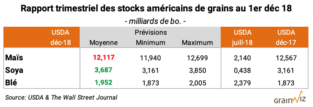 INVENTAIRES TRIMESTRIELS DE GRAINS AMÉRICAINS