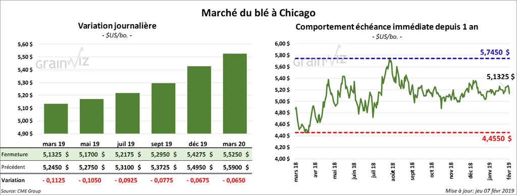 La plupart des contrats de blé US ont terminé la journée avec des pertes de 7 à 13 cents. Ceux de blé d’hiver US ont aussi faibli.