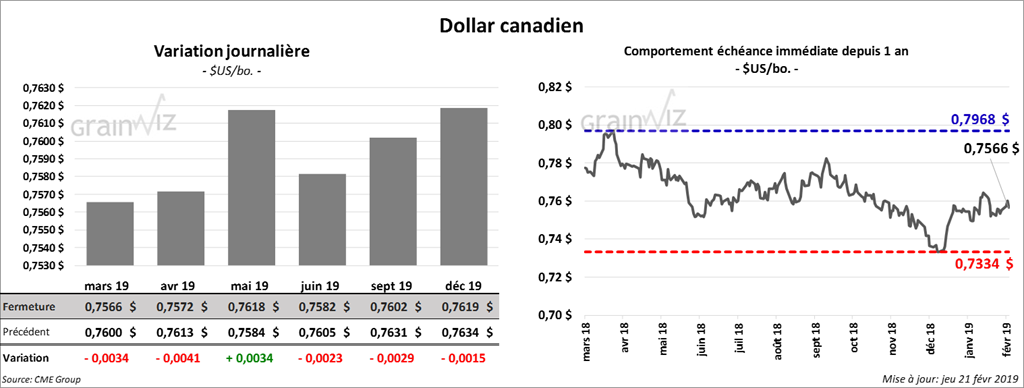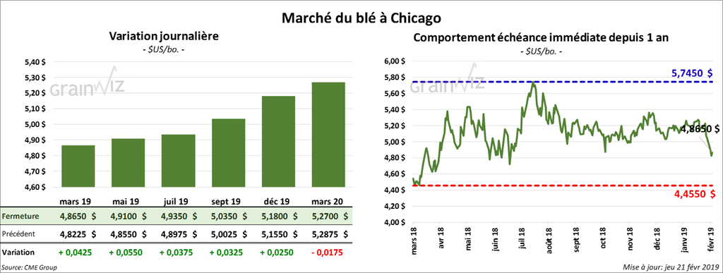 Concernant le rapport sur les ventes à l’exportation des semaines du 10 janvier au 14 février dernier, qui sera rendu public demain, le marché s’attend à des ventes de maïs US entre 4 et 7 millions de tonnes pour l’ancienne récolte et entre 50,000 et 250,000 tonnes pour la nouvelle.