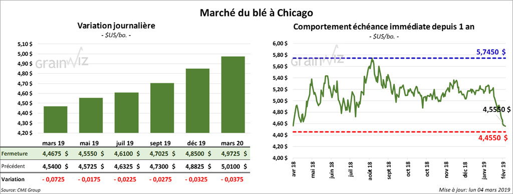 La majorité des contrats de blé US ont terminé la journée avec des pertes de 1 à 9 cents.