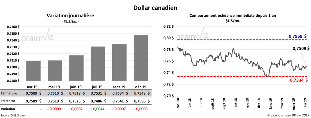 Dans son rapport mensuel d’offre et de demande, le USDA a abaissé sa projection des inventaires américains de soya de 5 millions de boisseaux à 895 millions de boisseaux. La baisse des importations de même que la hausse de l’usage pour les semences expliqueraient cette baisse. Mondialement, le USDA estime que la production de soya brésilien est en hausse de 0,5 million de tonnes à 117 millions de tonnes. L’amélioration des rendements est la principale cause de cette augmentation. Par ailleurs, le USDA laisse inchangé son évaluation de la production de soya argentin à 55 millions de tonnes. Globalement, les inventaires mondiaux sont en légère progression à 107,36 millions de tonnes, ce qui reflète l’augmentation de la production sud-américaine de soya.