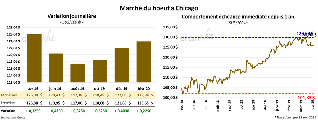 La plupart des contrats de bœuf à Chicago ont fini la session au neutre à haussier de 47,5 cents. Les contrats de veau ont aussi terminé dans le vert de 25 à 85 cents.