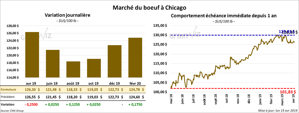 Les contrats de bœuf à Chicago ont terminé la séance sur une note partagée. Toutefois, la plupart d’entre eux ont clôturé au neutre à haussier de 30 cents. La majorité des contrats de veau ont fini la journée en progression de 25 à 55 cents.