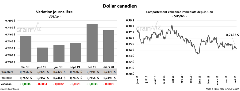 Les contrats de soya US aux échéances les plus rapprochées ont terminé la journée à la hausse d’une fraction de cent. Mais, la plupart des contrats de 2020 ont clôturé en baisse. Les contrats de tourteau ont fini la session dans le rouge de 3,40 $/tonne. Le contrat d’huile mai 19 a clôturé en baisse de 3 points.