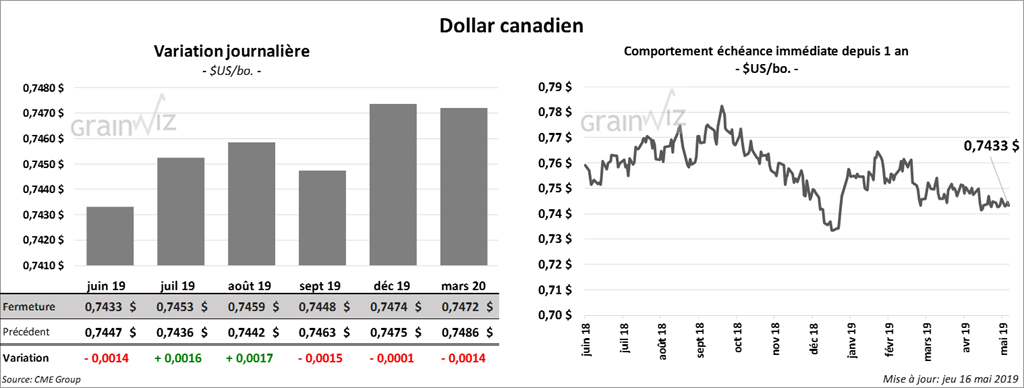 Soutenus par la performance du maïs US, les contrats de soya US aux échéances les plus rapprochées ont terminé la journée avec des gains de 4 à 5 cents. Quant au tourteau, le contrat juillet 19 a gagné 2,20 $/tonne. L’huile a pris 48 points.