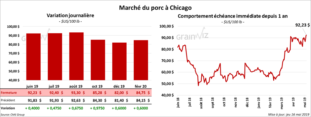 Les contrats de porc à Chicago ont terminé la journée sur une note partagée. Ceux aux échéances les plus rapprochées ont fini en baisse alors que ceux différés ont terminé la session en hausse.