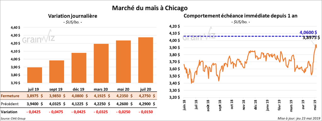 Pour la première fois en 9 sessions consécutives, la plupart des contrats de maïs à Chicago ont terminé en baisse de 1 à 5 ¼ cents.
