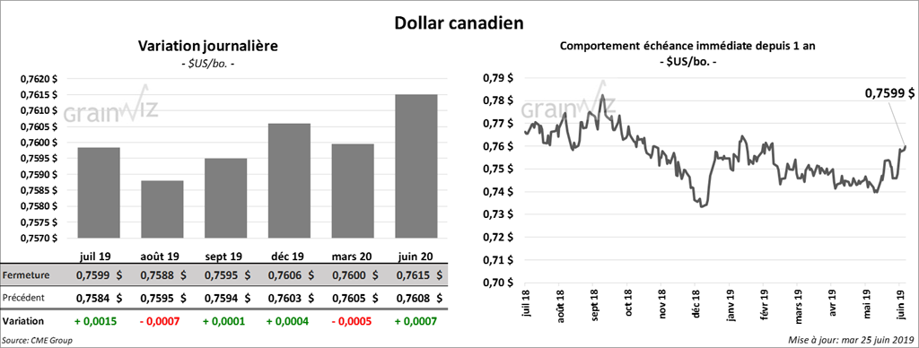 Le USDA estime que dimanche dernier, les conditions de culture du blé d’hiver US et celles de blé de printemps US ont décliné de 77 % à 75 % dans les catégories «bon à excellent». Au Kansas, la baisse a été de 5 points et en Oklahoma de 12 points. Dans le cas du blé de printemps, les seuls endroits où il y a une amélioration sont le Dakota du Sud et l’État de Washington. La maturation des semis est toujours en retard. Dans le cas du blé d’hiver US, 94 % sont en épiaison alors que la moyenne des dernières années est de 99 %. Dans le cas du blé de printemps, 7 % est en épiaison contre 29 % pour la moyenne des dernières années. La récolte du blé d’hiver est terminée à 15 % comparativement à une moyenne des dernières années de 34 %. Au Kansas, les travaux sont terminés à seulement 5 %. En Oklahoma, la récolte est complétée à 43 % et au Texas à 58 %. Cette semaine, les prévisions plus sèches pour le sud des Plaines devraient permettre une meilleure progression de la récolte.