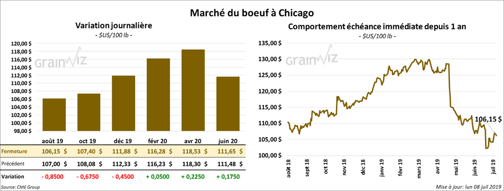 La plupart des contrats de bœuf à Chicago ont fini dans le rouge. Les contrats de veau ont clôturé sur une note partagée, mais ceux aux échéances les plus rapprochées ont terminé en hausse d’un cent.