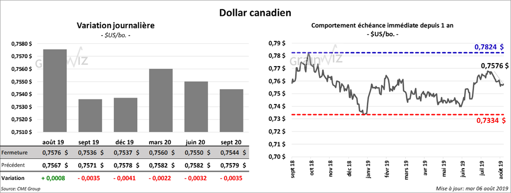 Un sondage réalisé par Reuters concernant la publication du rapport sur la production des cultures, qui viendra lundi prochain, indique que les analystes s’attendent à des rendements de soya US de 47,6 bo./acre pour 2019, ce qui correspond à une baisse de 0,9 bo./acre par rapport à juillet dernier. La superficie est anticipée en hausse de 1 million d’acres à 81 millions d’acres. Quant à la production, les prédictions sont à la baisse de 3,8 milliards de boisseaux à 45 millions de boisseaux.