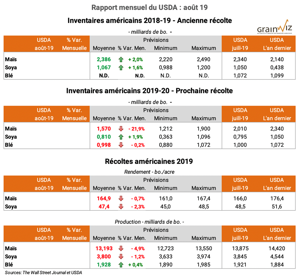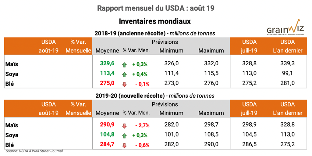 Pour accéder au rapport complet du USDA ce midi (en anglais): WASDE Août 19