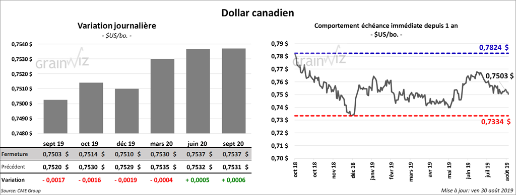 Les perspectives météorologiques des 8 à 14 prochains jours indiquent des possibilités de température sous la normale saisonnière pour l’ensemble du Corn Belt. Les producteurs de soya du Delta surveillent l’arrivée de l’ouragan Dorian, qui continue sa progression dans le Golf, tout en augmentant les probabilités d’averses pour le nord des États-Unis.