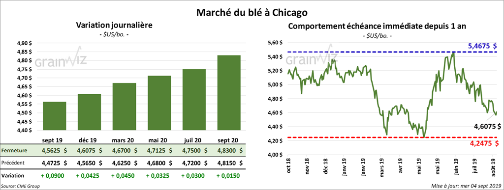 Dans une journée mouvementée, les contrats de blé US ont terminé la session en hausse de 3 à 12 cents.