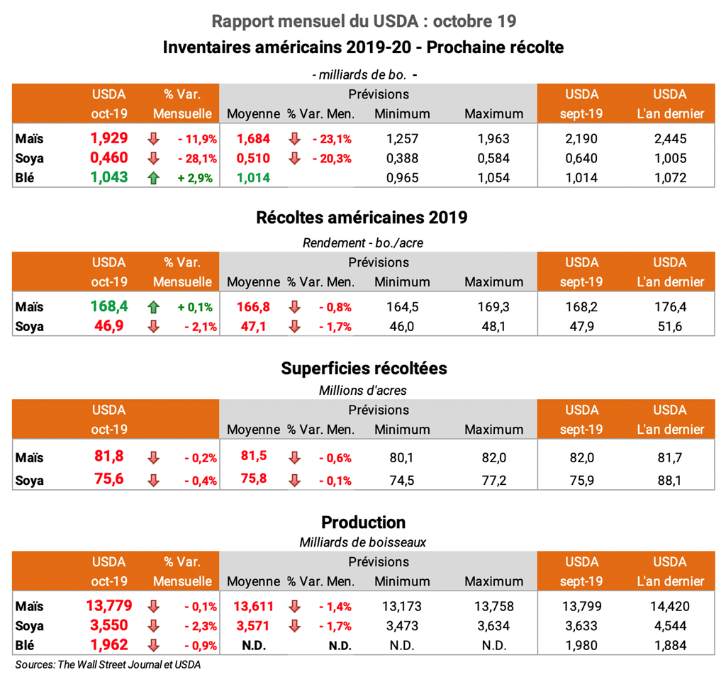 Pour accéder au rapport mensuel complet du USDA (en anglais): WASDE Oct 19
