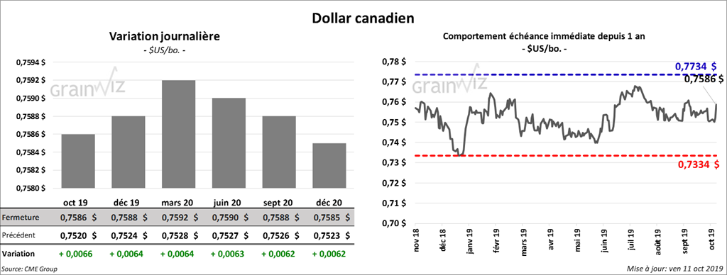 Les contrats de soya US aux échéances les plus rapprochées ont fini la session avec des gains de 9 ½ à 13 cents. Graphiquement, ils sont à leurs plus haut niveau depuis le 22 juin 2018. Le tourteau a aussi terminé la journée en hausse de 2,80 $/tonne. L’huile a pris 13 points.