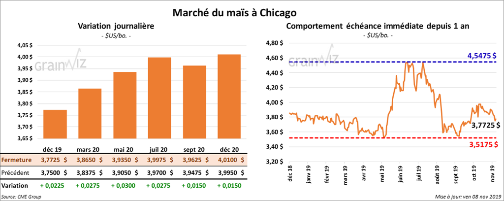 Pour la semaine, le contrat de maïs US décembre 19 a perdu 12 cents, mais il a terminé la journée avec des gains de 2 cents.