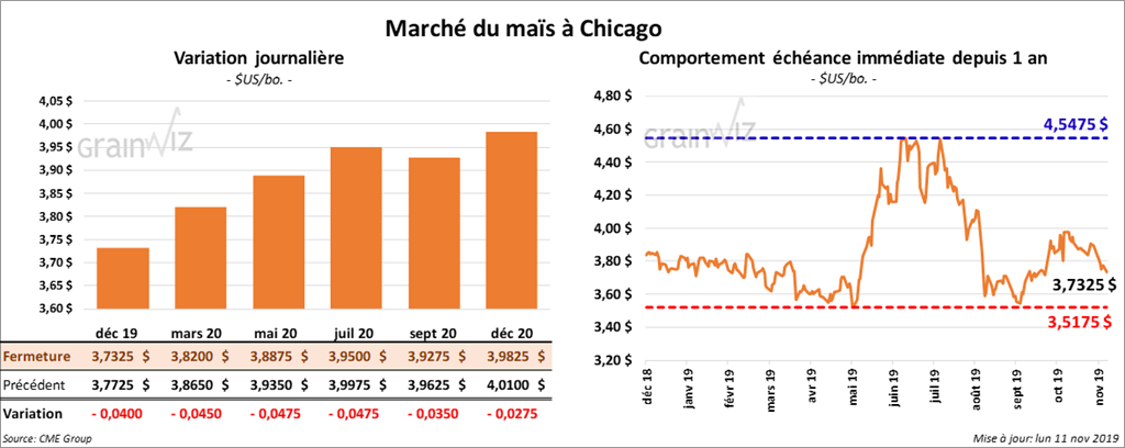 Le marché s’attend à ce que dimanche dernier, la récolte de maïs ait été terminée entre 65-66 %. Mais, en raison du congé du Veteran’s Day, le USDA devrait publier ses nouvelles données demain.