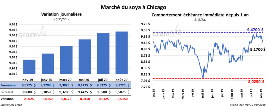 Les contrats de soya US ont fini la session sur une note partagée d’une fraction de cent. À la fermeture du marché, le tourteau de soya US était en hausse de 1,70 $ tonne. Par contre, l’huile avait perdu 39 points.