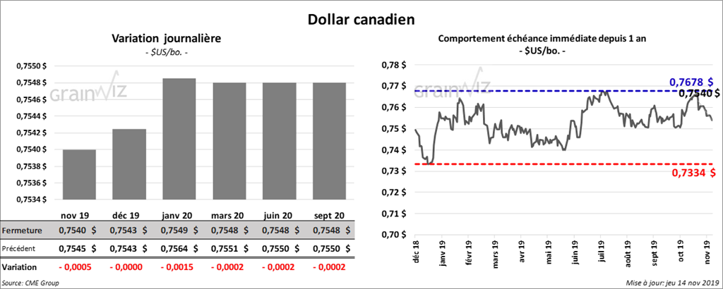 Le contrat de soya US novembre 19 a expiré à 9,0025 $ par boisseau. Les contrats aux échéances les plus rapprochées ont fini la session en hausse de 1 à ½ cents. Le tourteau a clôturé avec des pertes de 1,00 $/tonne. Par contre, l’huile a gagné 25 points.
