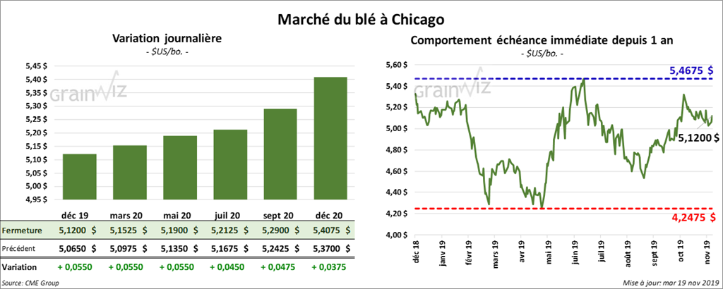Les contrats de blé US ont terminé la session en hausse. À Kansas, la progression a été plus marquée pour le blé dur rouge d’hiver, mais les contrats de blé aux échéances les plus rapprochées ont clôturé dans le vert de 7 ¼ cents. À Chicago, les contrats de blé ont fini en hausse de 3 ¼ à 4 ¾ cents. À Minneapolis, les contrats de blé dur rouge de printemps ont terminé au neutre à baissier de 1 cent.