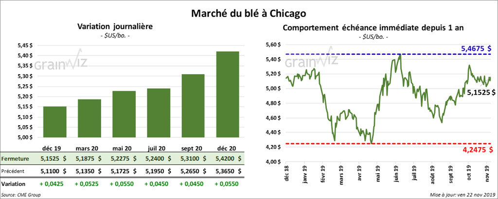 Les contrats de blé US ont terminé la session sur une note partagée. À Chicago, les contrats aux échéances les plus rapprochées ont gagné 7 cents, ce qui a fait en sorte que sur la semaine, ils ont progressé de 12 ½ cents. À Minneapolis, ce vendredi, ils ont clôturé en baisse de 2 ½ à 4 cents. Sur la semaine, les contrats de blé ont perdu 10 ½ cents.