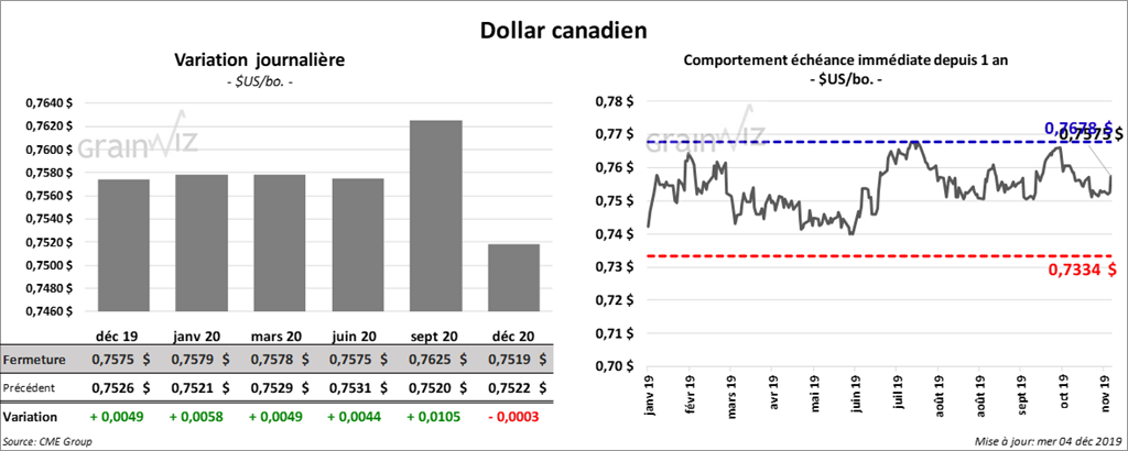 Vendredi, Statistique Canada devrait présenter son rapport sur la production des cultures. Dans le cas du maïs, le marché s’attend à une baisse de la récolte 2019 de 400,000 tonnes comparativement au mois de septembre dernier.