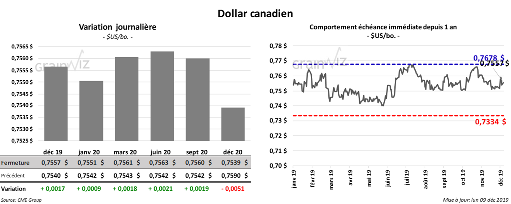 Pour le rapport de demain concernant le rapport mensuel d’offre et de demande, les marchés anticipent des stocks de fin d’année de blé US entre 964 et 1,05 milliard de boisseaux. Mondialement, les analystes s’attendent à des inventaires entre 283,9 et 290 millions de tonnes. La moyenne des prévisions est en baisse de 1,4 million de tonnes comparativement à novembre dernier.