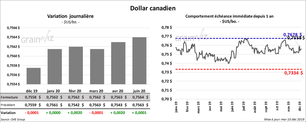 Mondialement, et toujours selon le USDA, la production de soya brésilien demeure ferme à un record de 123 millions de tonnes. L’évaluation de la production de soya argentin reste la même qu’en novembre à 53 millions de tonnes. Pour 2019/2020, le USDA estime les stocks de fin d’année de soya à 96,4 millions de tonnes, ce qui est une augmentation par rapport au mois de novembre dernier. À noter toutefois que les inventaires de fin d’année mondiaux de soya ont été évalués à leur plus bas niveau depuis 2017/2018.