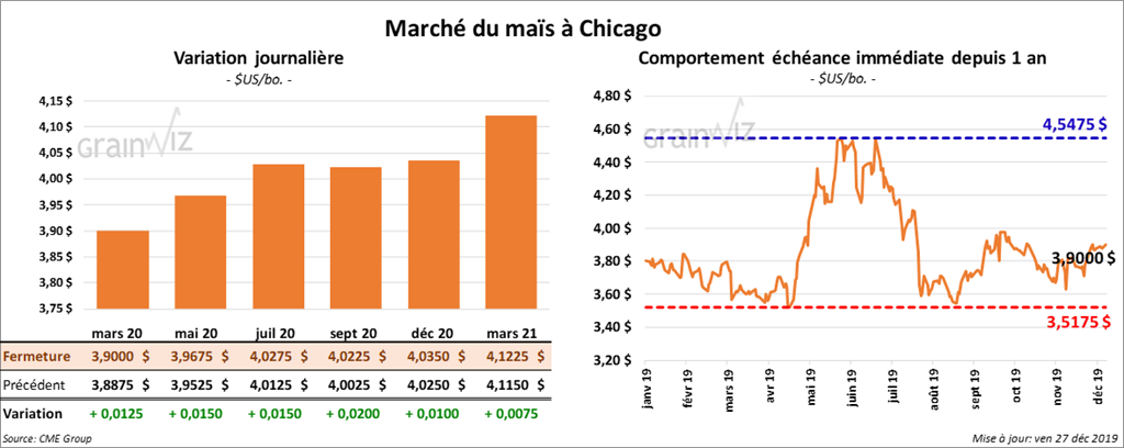À la fermeture du marché de Chicago, les contrats de maïs étaient à la hausse de 1 ½ cents. Pour la semaine, ils ont progressé de 2 ¼ cents.