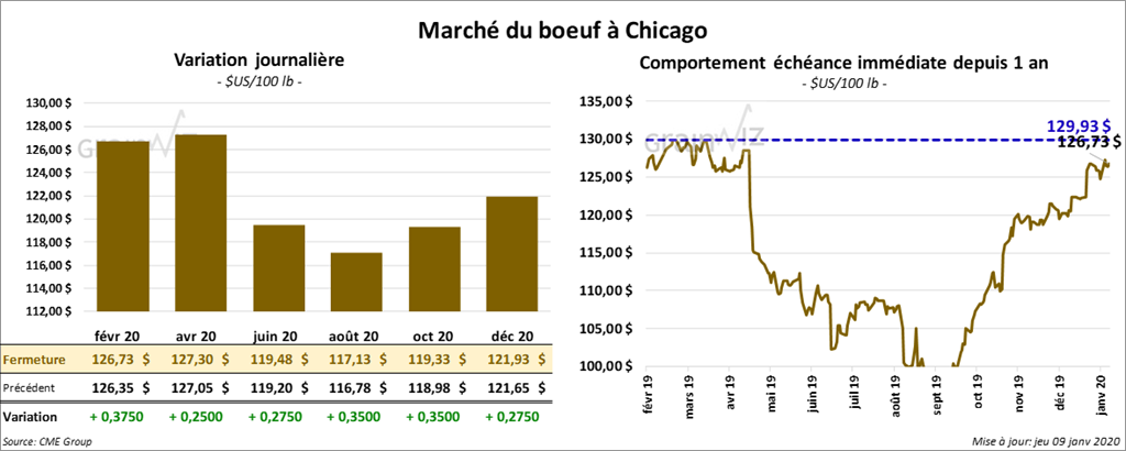 Les contrats de bœuf US ont terminé la session en hausse de plus de 37 cents. Les contrats de veau US ont aussi clôturé avec des gains de 2 à 15 cents.