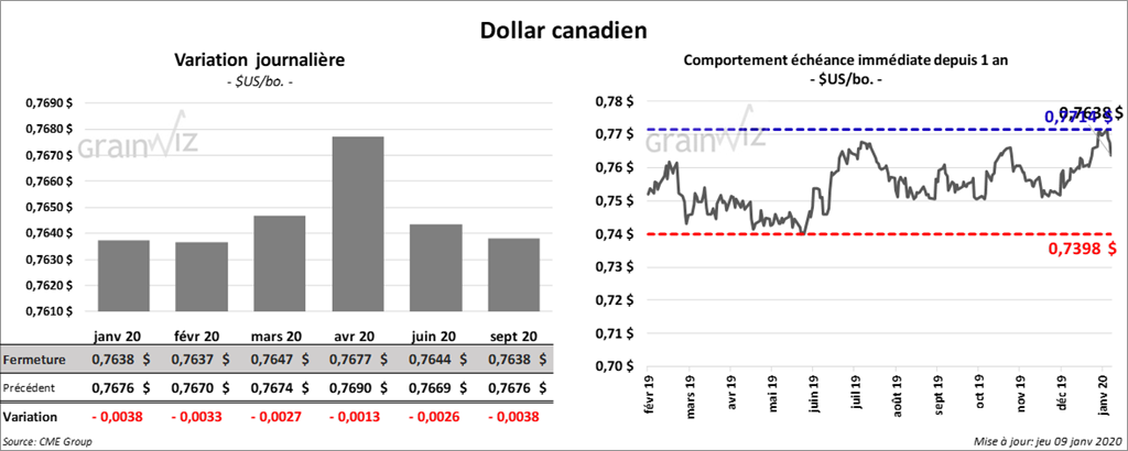 Concernant le rapport d’offre et de demande qui sera disponible demain, les analystes estiment que les stocks de fin d’année de soya argentin seront en baisse de 0,2 million de tonnes. Ils prévoient également que ceux de soya brésilien seront en hausse de 0,1 million de tonnes. La moyenne des anticipations pour les inventaires de fin d’année de soya US est de 431 millions, soit une baisse comparativement aux 475 millions de tonnes enregistrées en décembre dernier.