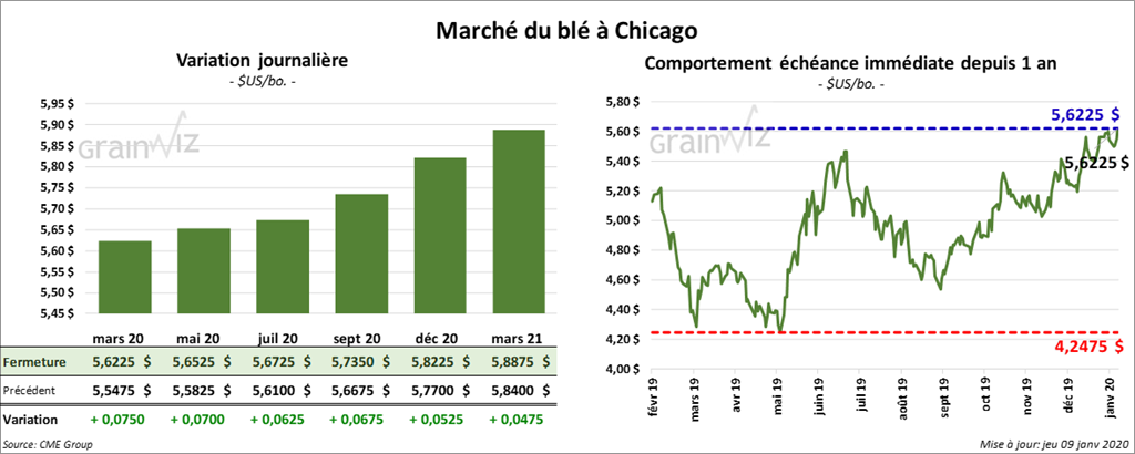 Demain paraîtra aussi le rapport sur la production de maïs US 2019/2020. En moyenne, les analystes anticipent que cette dernière sera en baisse de 158,9 millions de boisseaux par rapport à novembre à 13,502 milliards de boisseaux. Selon un sondage de Bloomberg, les analystes prévoient également une réduction des stocks de fin d’année de 134 millions de boisseaux et ils estiment que les inventaires devraient être de 1,776 milliard de boisseaux.