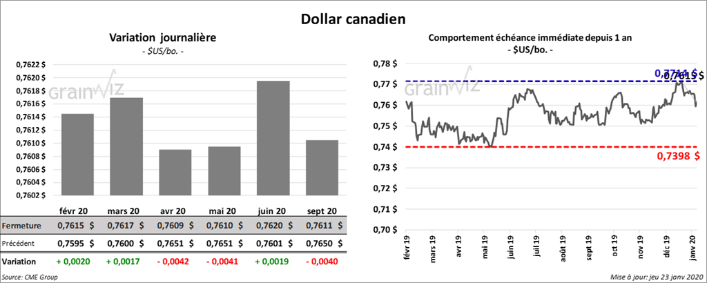 Les contrats de soya US aux échéances les plus rapprochées ont terminé la journée avec des baisses de 4 ¼ cents. Le contrat de tourteau de soya US mars 20 a gagné 1 $/tonne. Le contrat d’huile de soya US mars 20 a reculé de 54 cents.